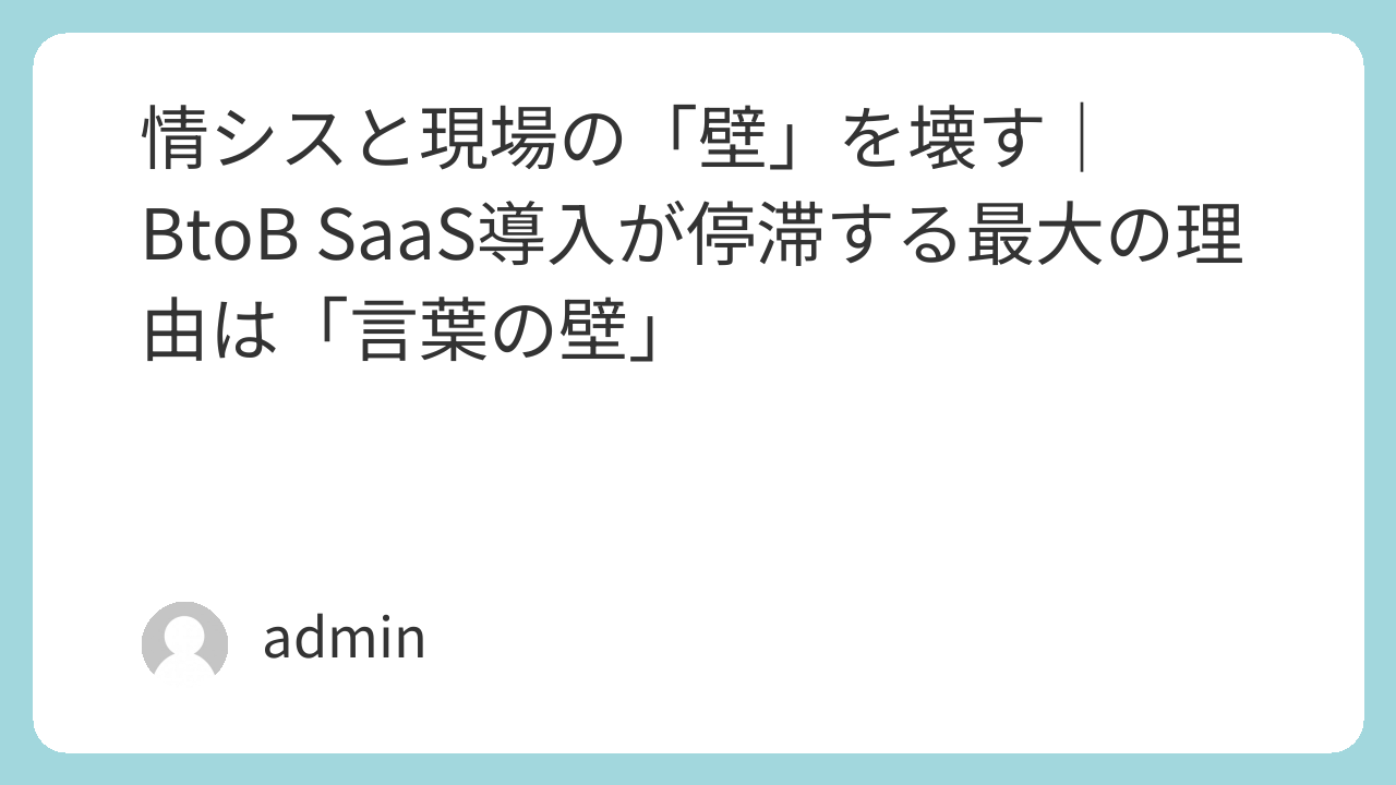 情シスと現場の「壁」を壊す|BtoB SaaS導入が停滞する最大の理由は「言葉の壁」