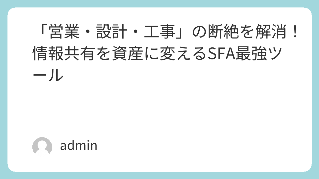 「営業・設計・工事」の断絶を解消!情報共有を資産に変えるSFA最強ツール